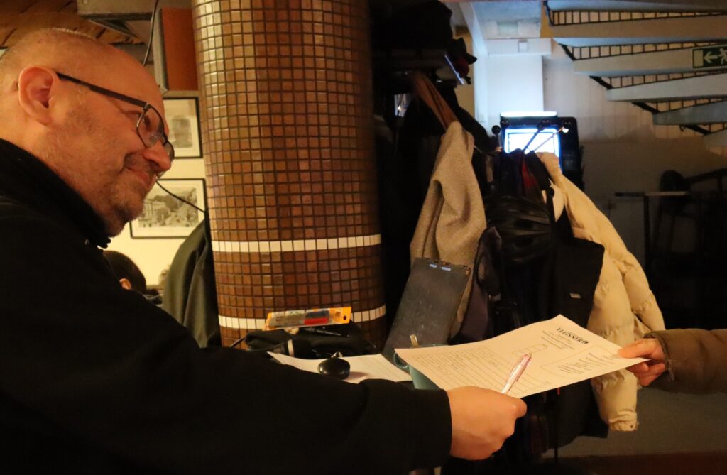 Tupa alkaa olla täynnä, kun Tommi Laitinen valmistautuu aloittamaan visailun Bar Bristolissa.