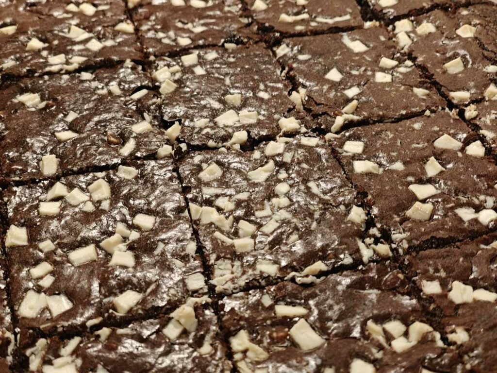 –Saavuttaakseni vähemmän kitkerän ja raikkaamman maun, päätin vaihtaa tumman suklaan valkosuklaaseen ja leivoin toisen erän brownieita pari viikkoa myöhemmin ja kun olin sen saanut valmiiksi, niin tiesin löytäneeni etsimäni.